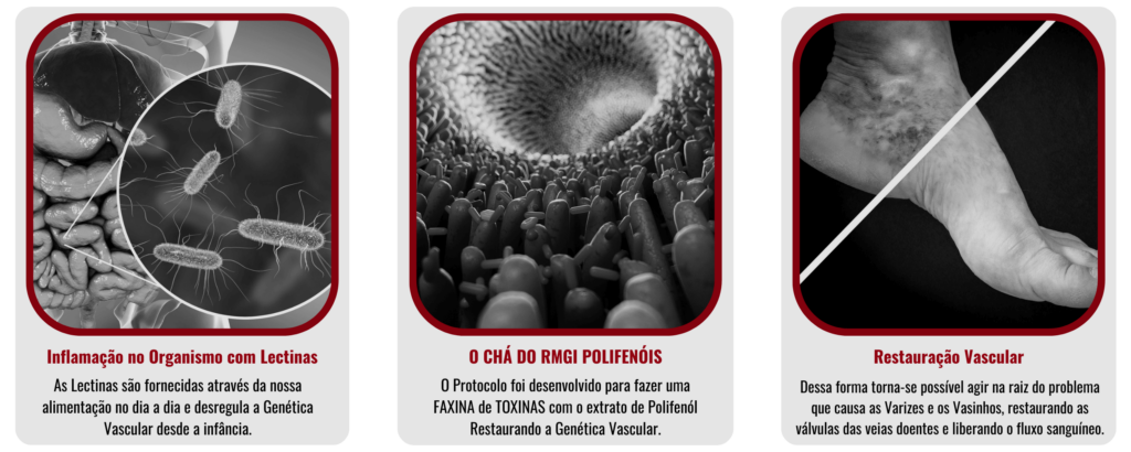 Resposta: O CHÁ RMGI POLIFENÓIS age Reprogramando a sua Genética Vascular, restaurando a saúde das suas veias doentes e entupidas da perna.
